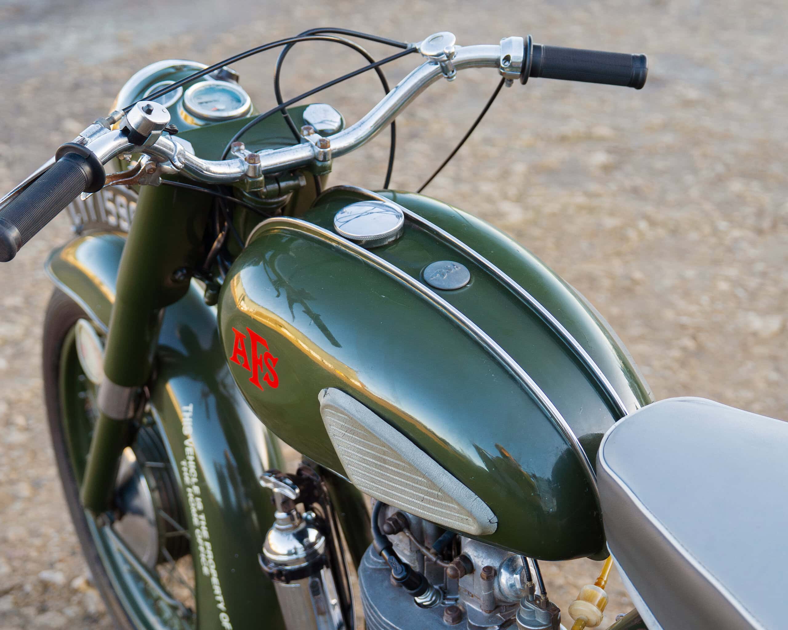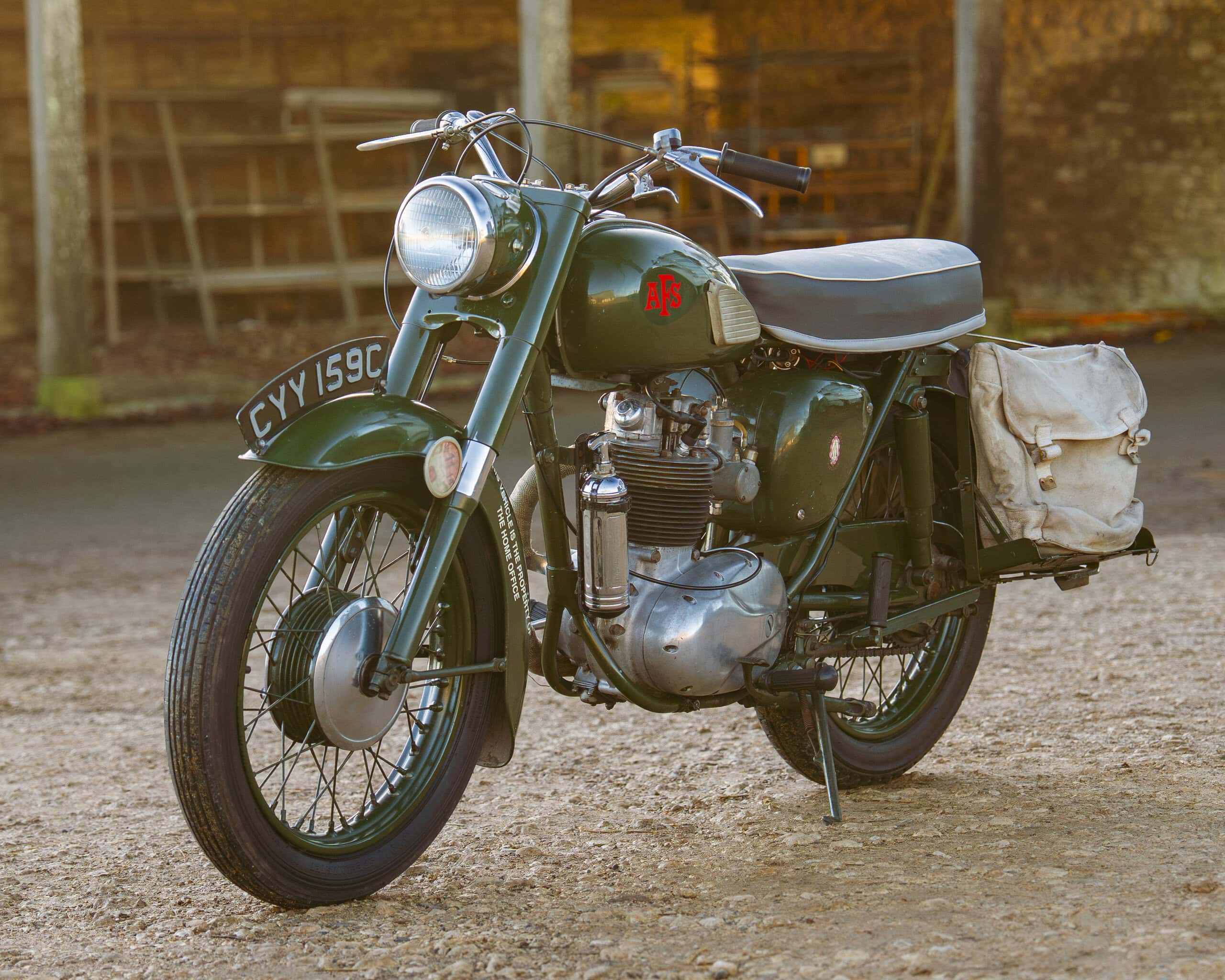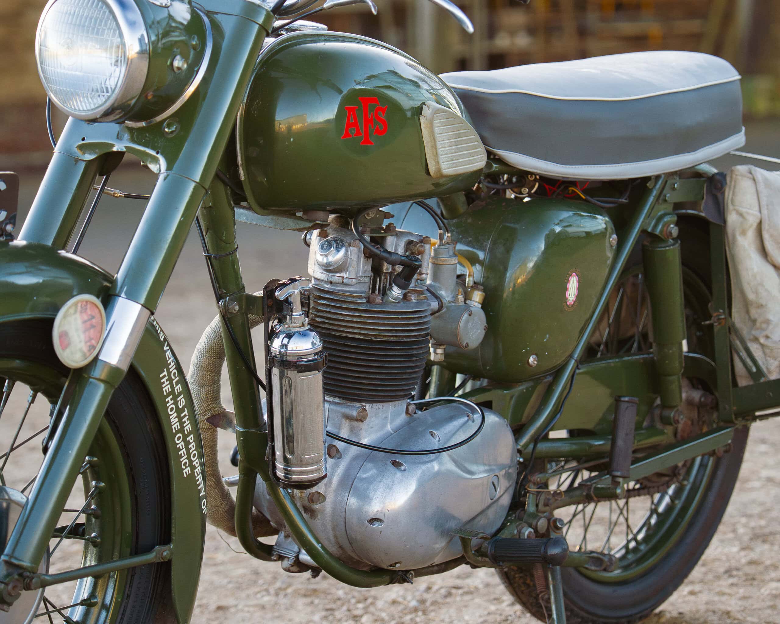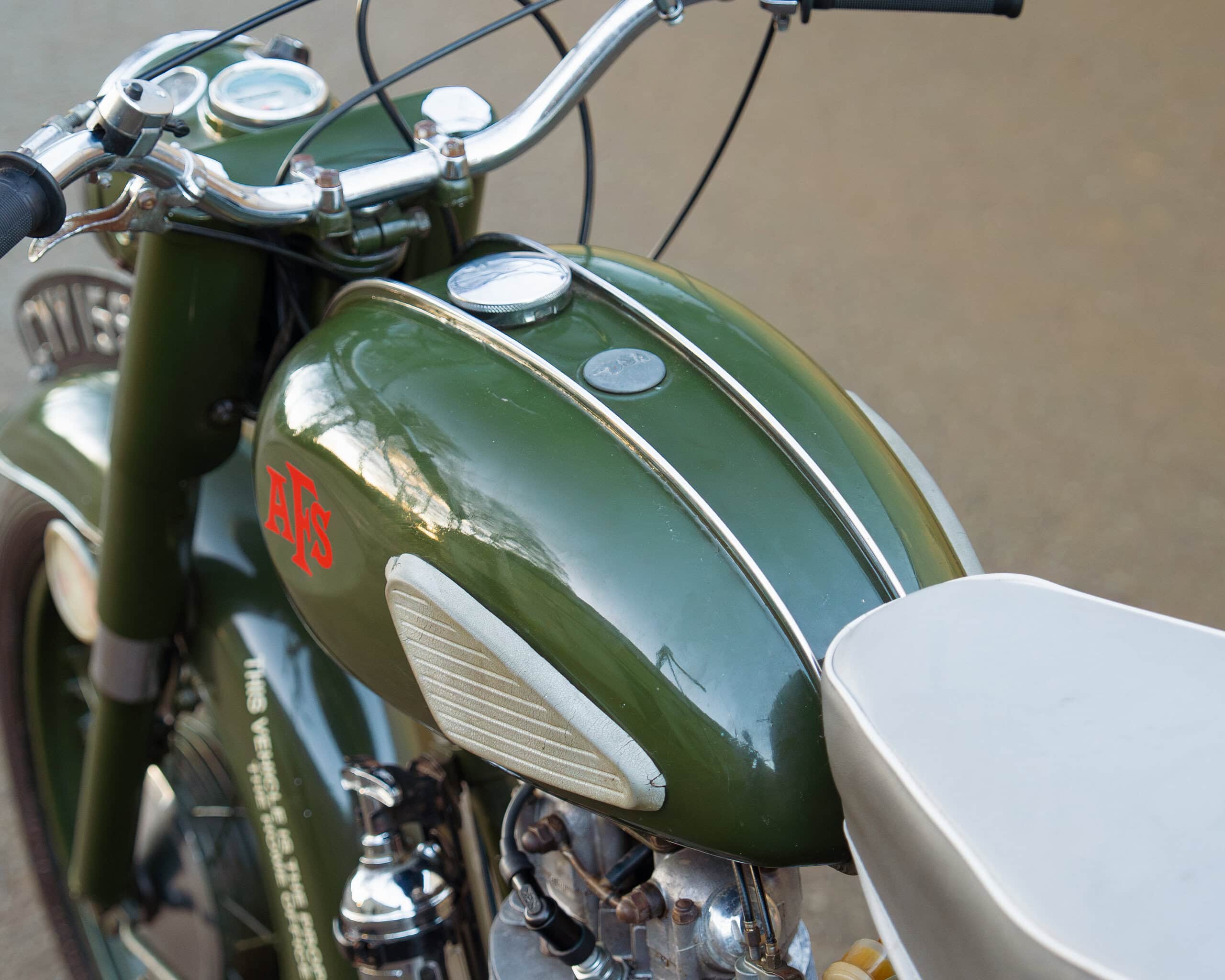 This example retains much of its authentic AFS character, complete with its military green paintwork, fire extinguisher, and saddlebags, just as it would have been equipped in service. After being retired from active AFS use around 1968, it was sold via government surplus, with a 1974 bill of sale included to verify its fascinating history.