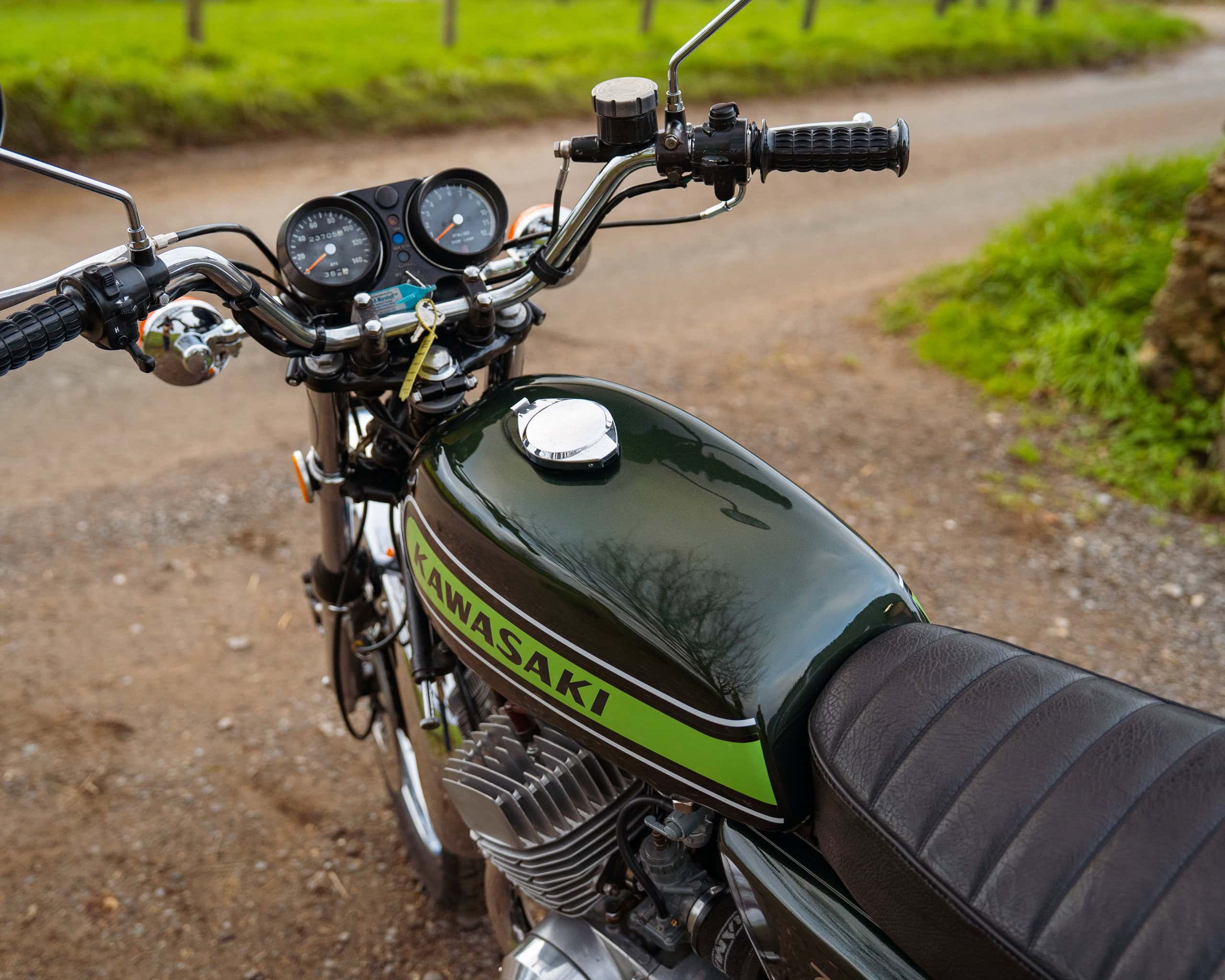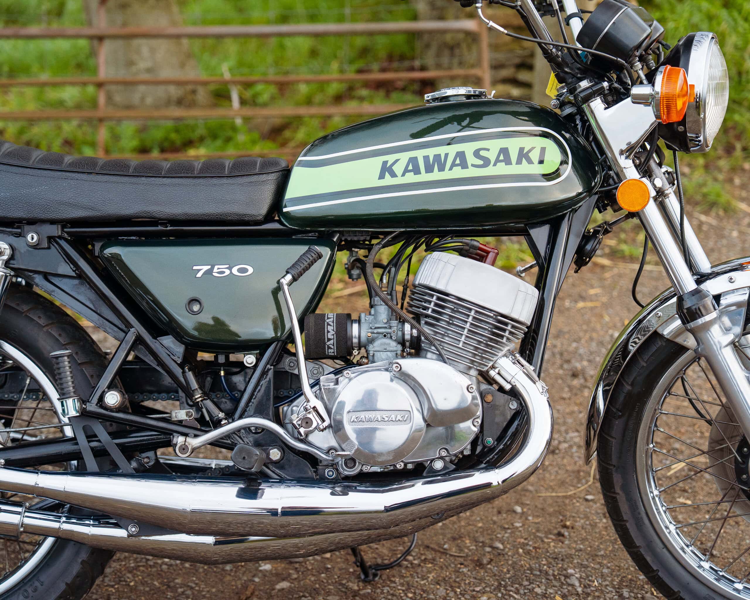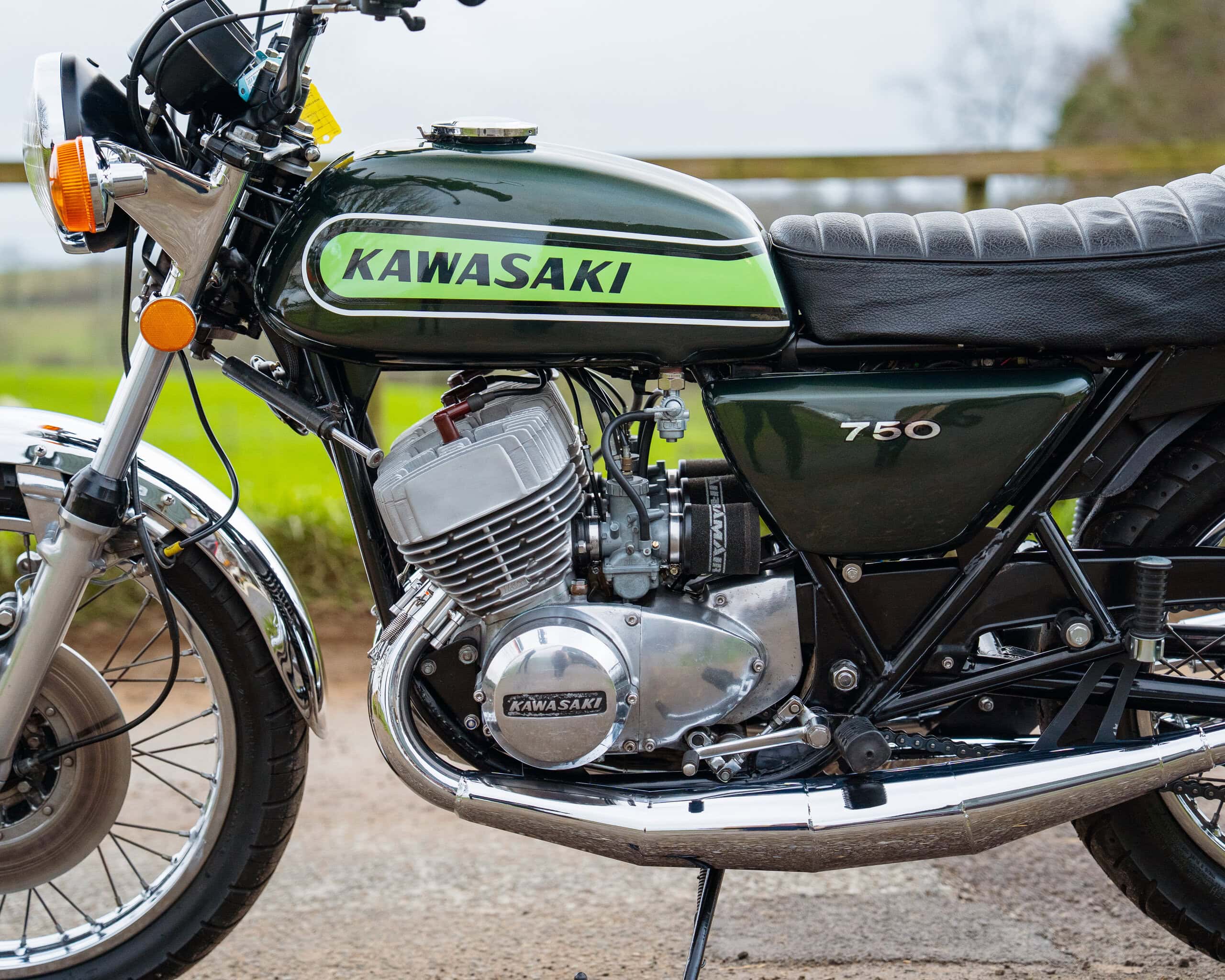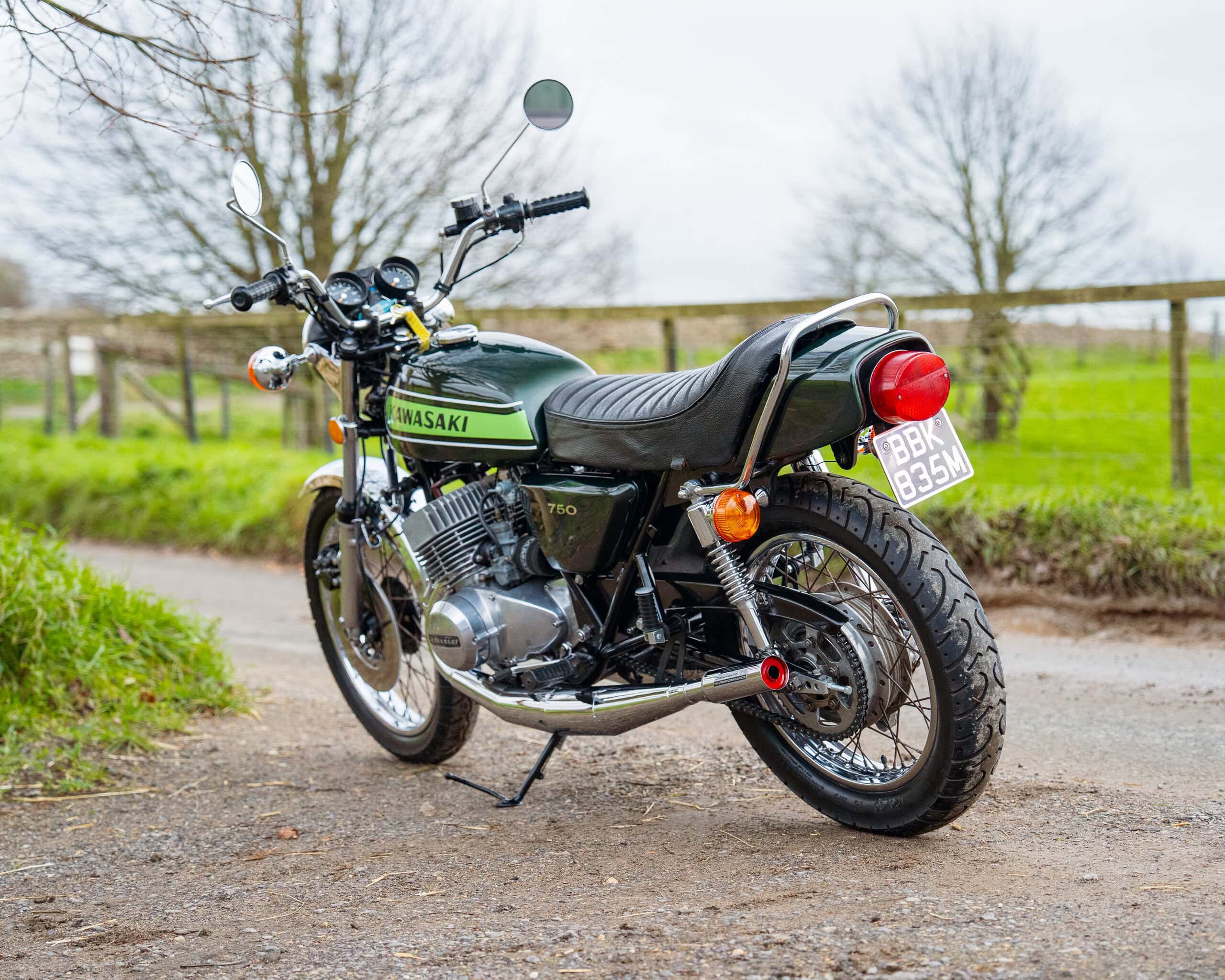 The bike has had a recent rebore with Wossner pistons, a vapour-blasted top end, and a crank previously rebuilt by renowned two-stroke specialist Gary Clarke around 2,000 miles ago. It now runs superbly, starts easily, and has proven extremely reliable—an H2 that you can actually enjoy riding rather than just displaying.