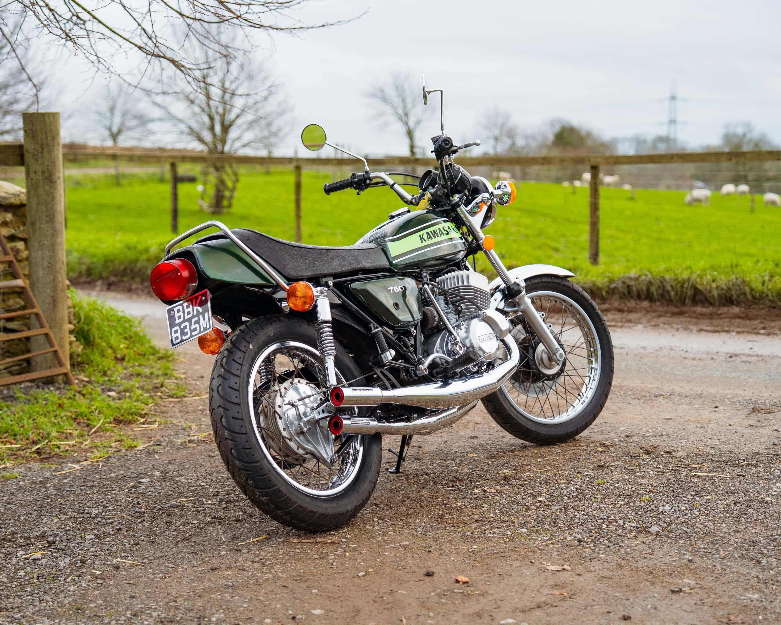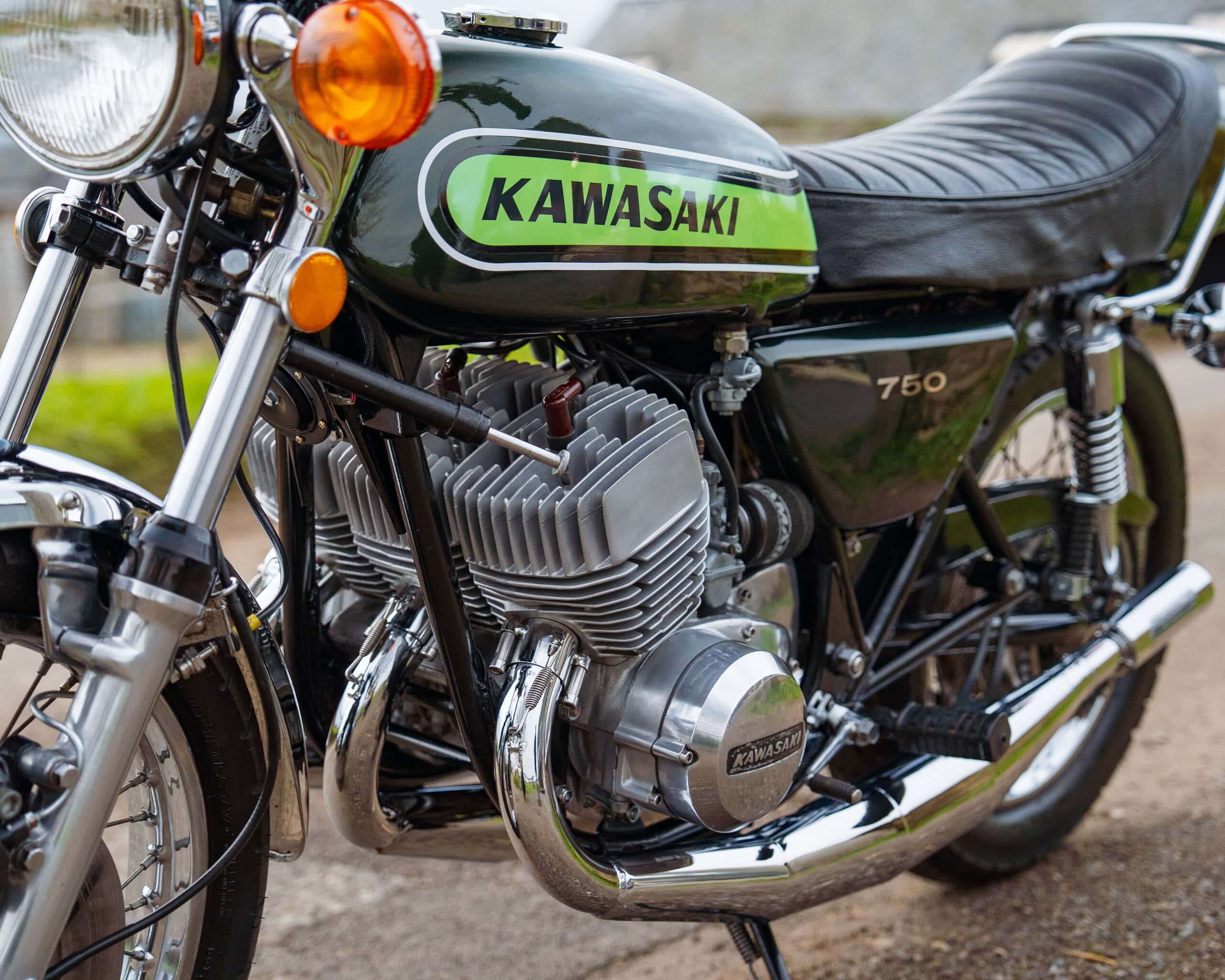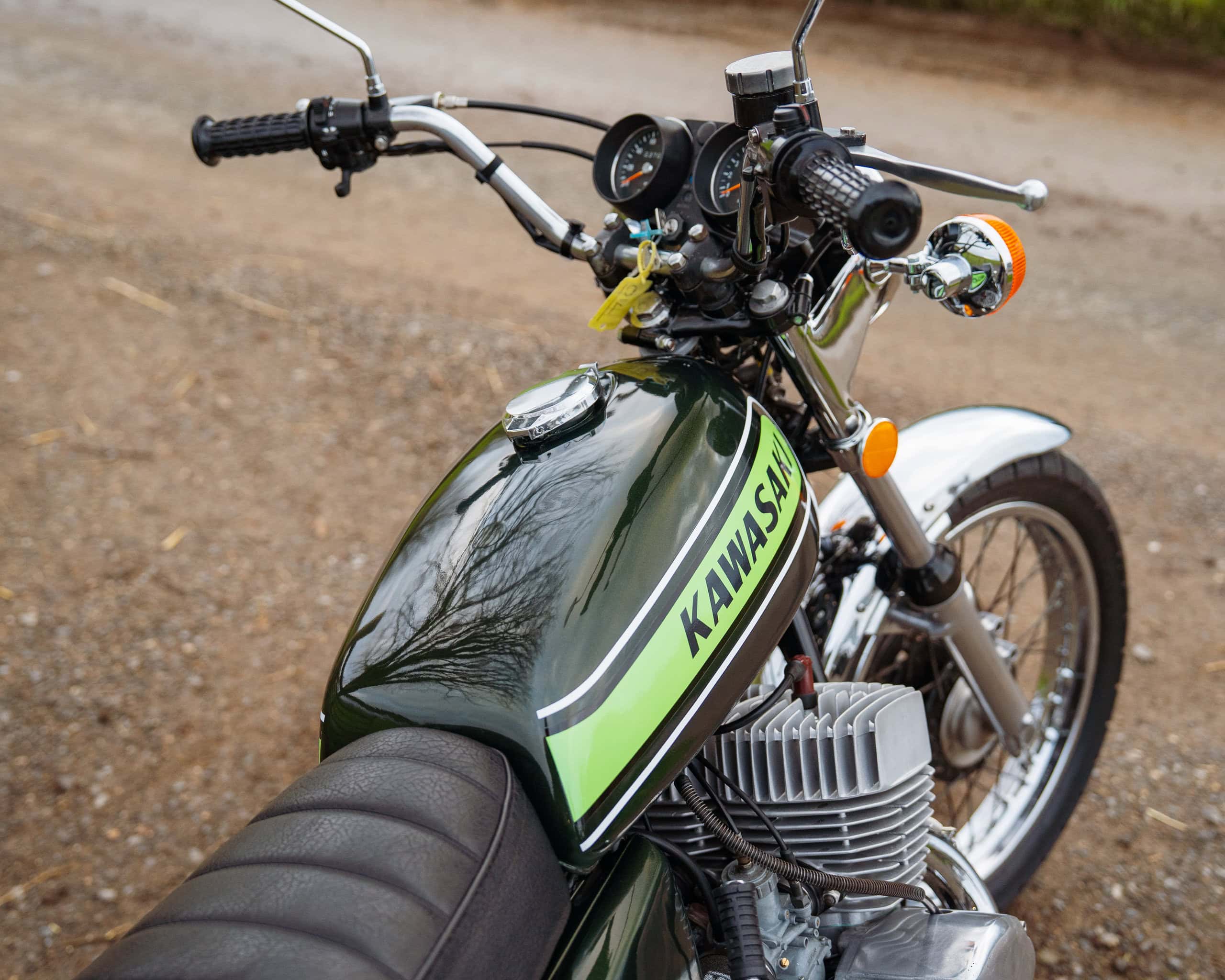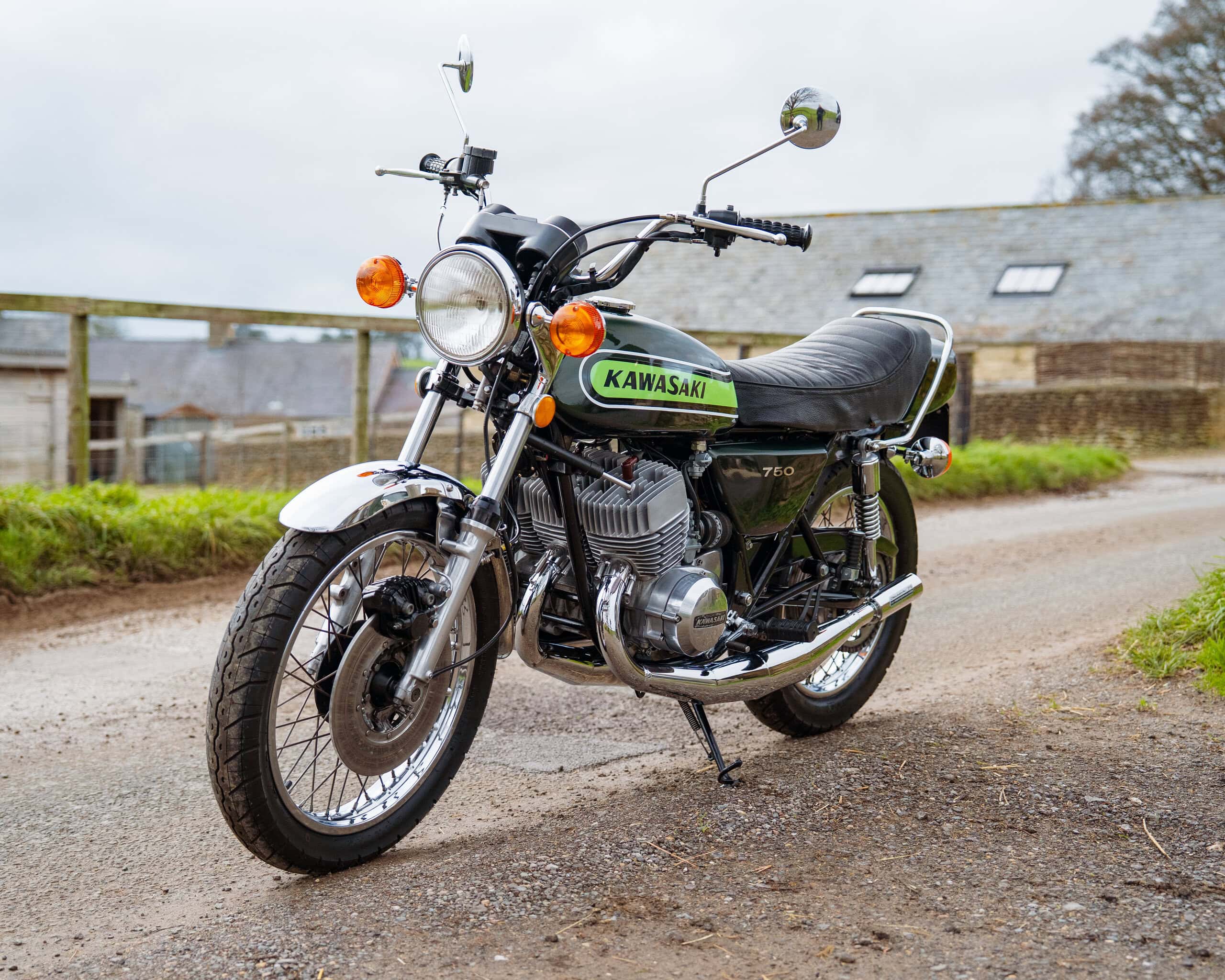 The bike has had a recent rebore with Wossner pistons, a vapour-blasted top end, and a crank previously rebuilt by renowned two-stroke specialist Gary Clarke around 2,000 miles ago. It now runs superbly, starts easily, and has proven extremely reliable—an H2 that you can actually enjoy riding rather than just displaying.